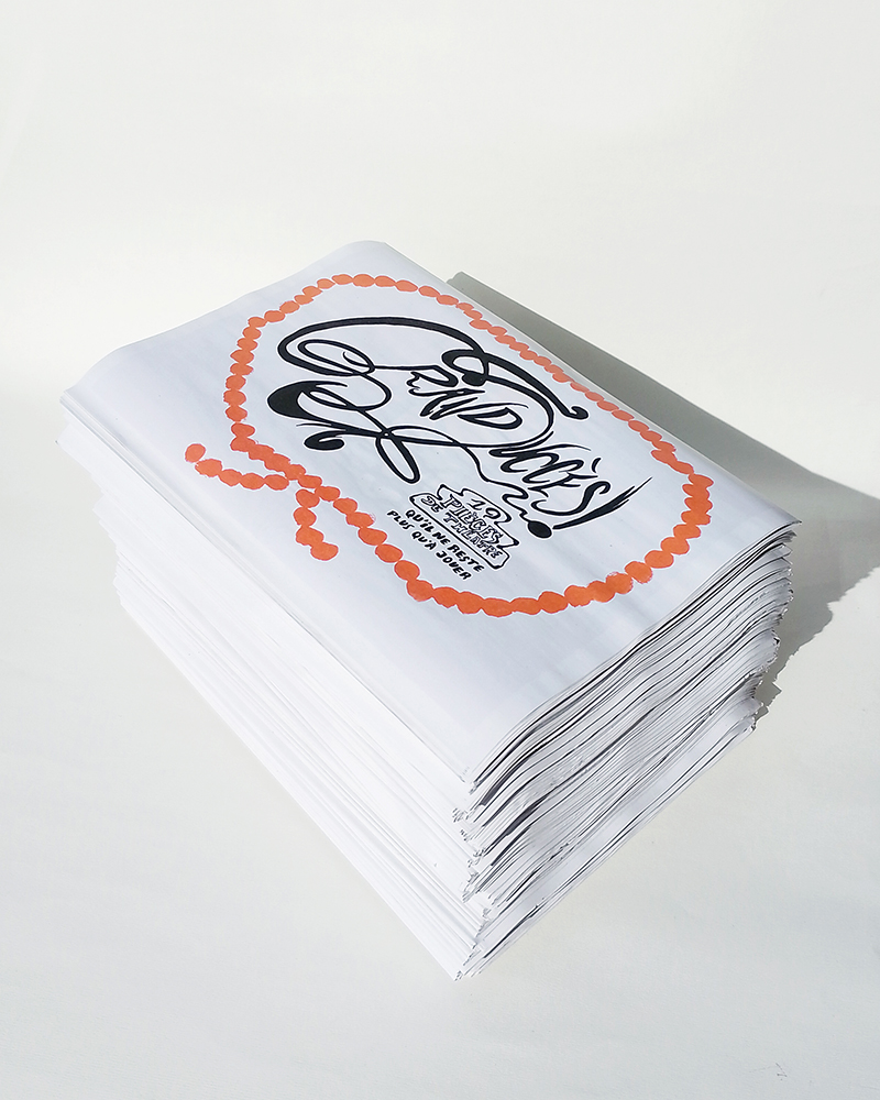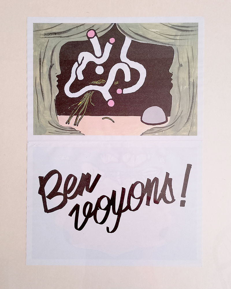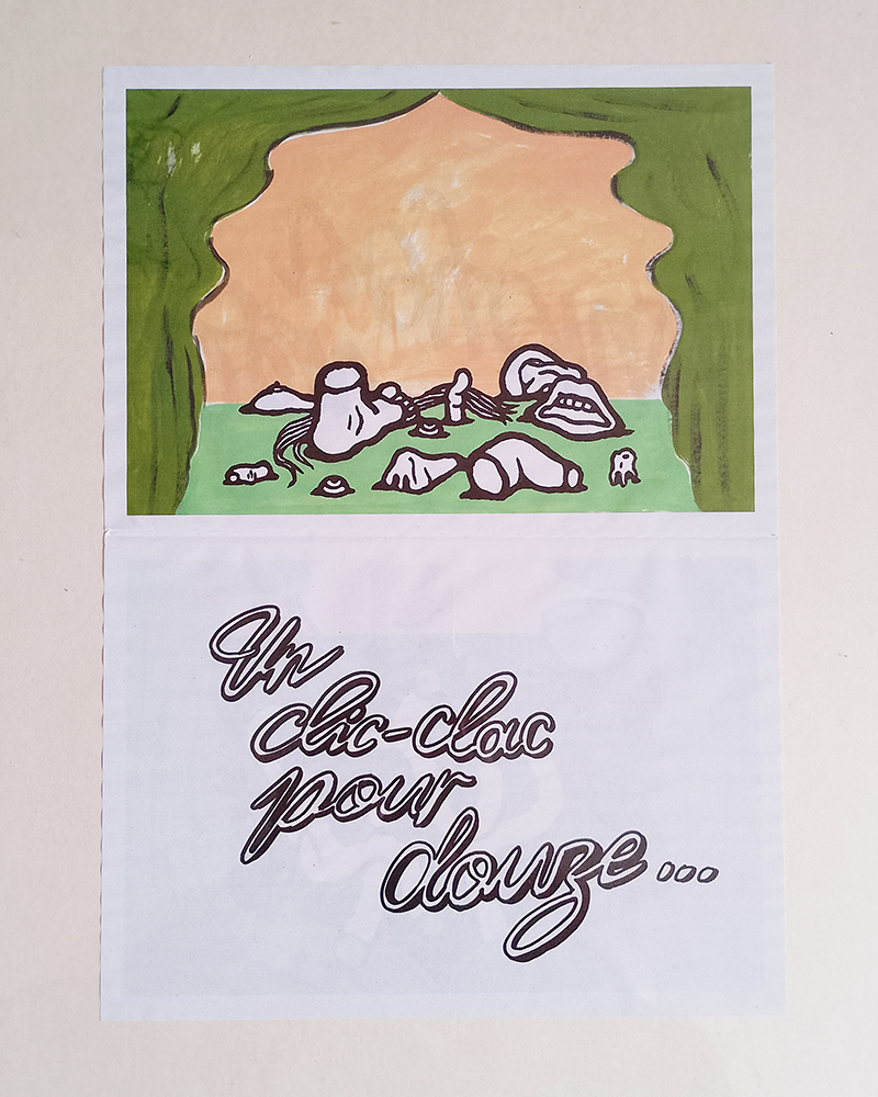 19 pièces qu'il ne reste plus qu'à jouer réalisées et co-éditées avec Pauline Barzilaï & Pauline Lecerf 19 affichettes imaginées à six main imprimé sur papier magazine, format A4 plié quadrichromine