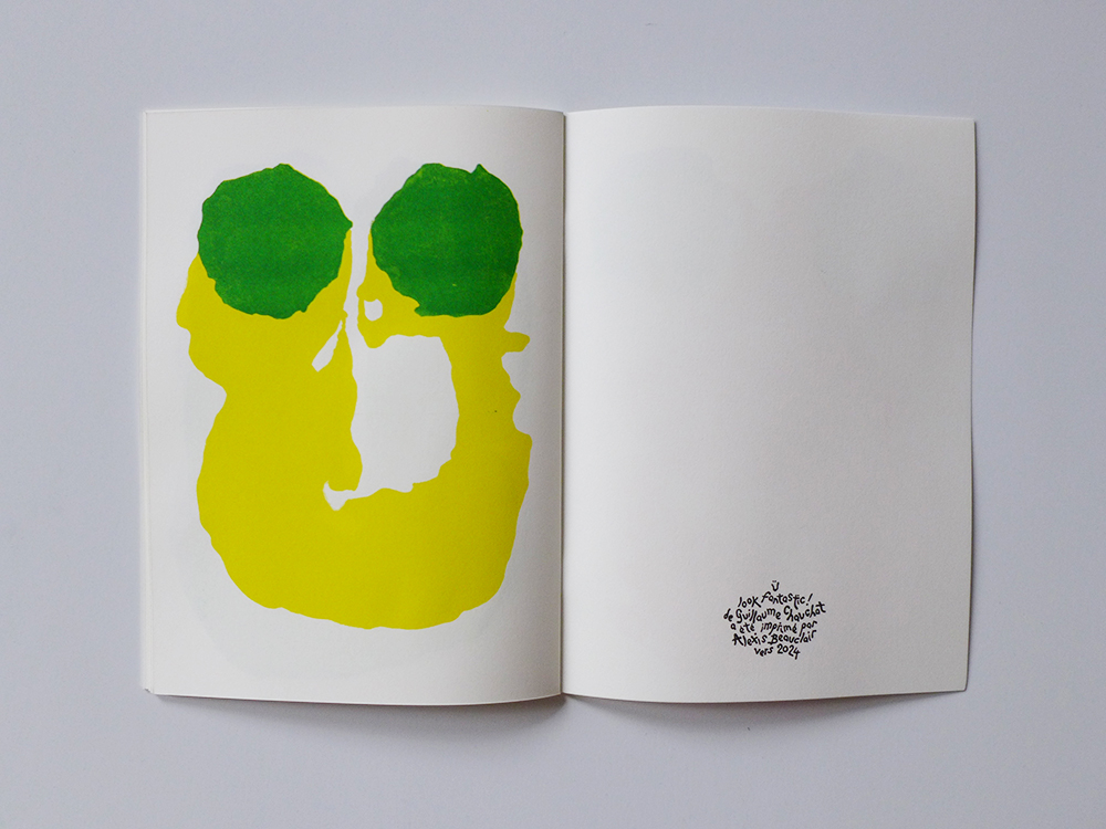 Cahier agrafé, 24 pages 27 x 19,5 cm Imprimé en Risographie avec 6 couleurs 80 exemplaires Ü look fantastic ! est un fanzine qui rassemble une vingtaine de gouaches réalisées en 2023.