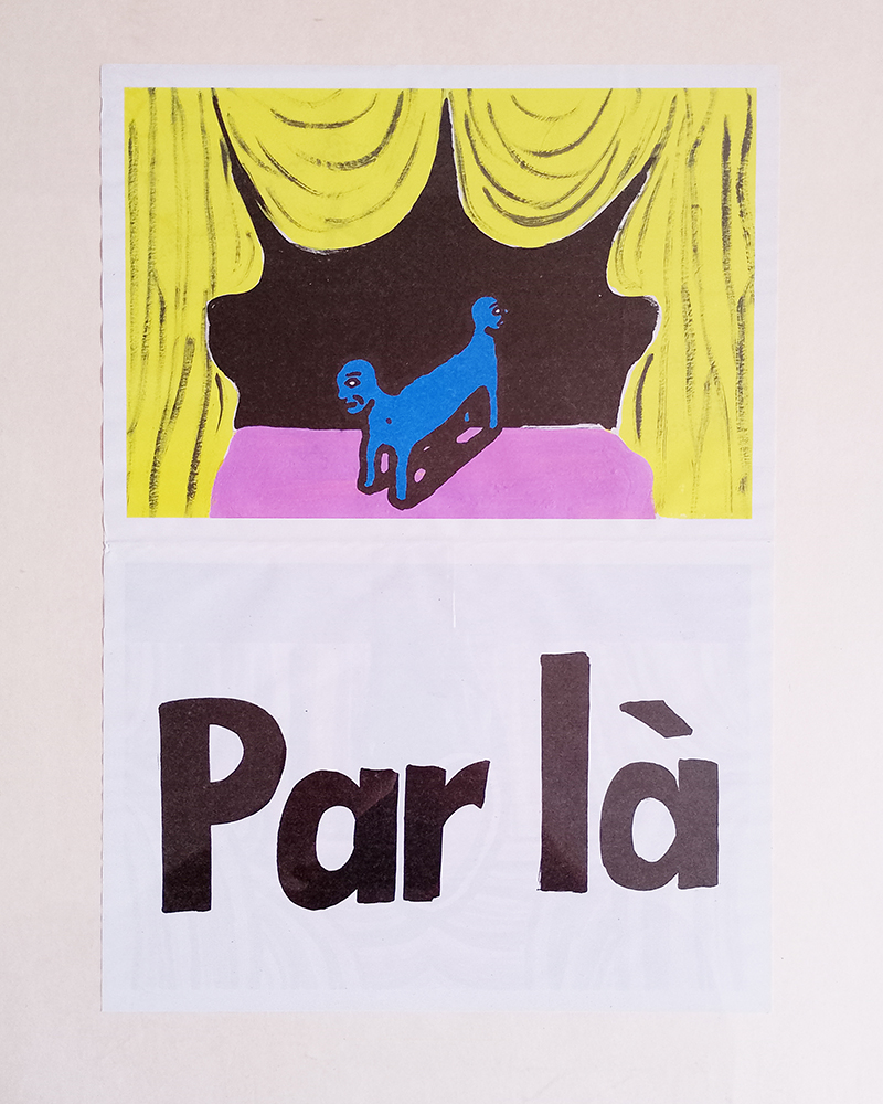 19 pièces qu'il ne reste plus qu'à jouer réalisées et co-éditées avec Pauline Barzilaï & Pauline Lecerf 19 affichettes imaginées à six main imprimé sur papier magazine, format A4 plié quadrichromine