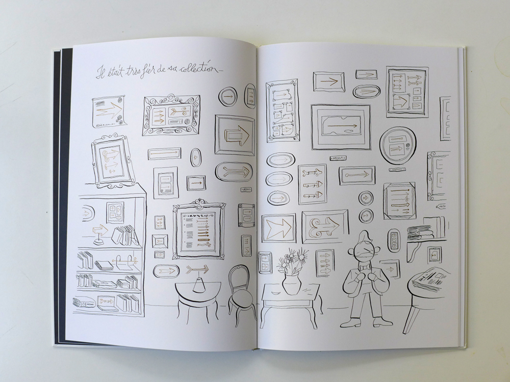 Le collectionneur dont il est question dans ce livre, n'a pour passion ni les timbres, ni les pièces, ni même les trèfles à quatre feuilles. Non, ce qui l'intéresse et ce à quoi il consacre sa vie, ce sont les flèches. Pas n'importe quelles flèches : celles qui indiquent la droite. De l'autre côté de la rue, son voisin trouve cette manie ridicule, pour la bonne raison qu'il est lui-même collectionneur de flèches, mais celles qu'il affectionne montrent la gauche. Lorsqu'un jour, dans une brocante, les hommes se trouvent nez à nez, tous deux sont alors persuadés que la flèche extraordinaire qui se trouve à leurs pieds leur revient de droit, car, bien entendu, selon le côté où l'on se trouve, celle-ci marque la droite... ou la gauche. Les deux collectionneurs n'ont d'autre choix que de partager leur trouvaille et de devenir ami...